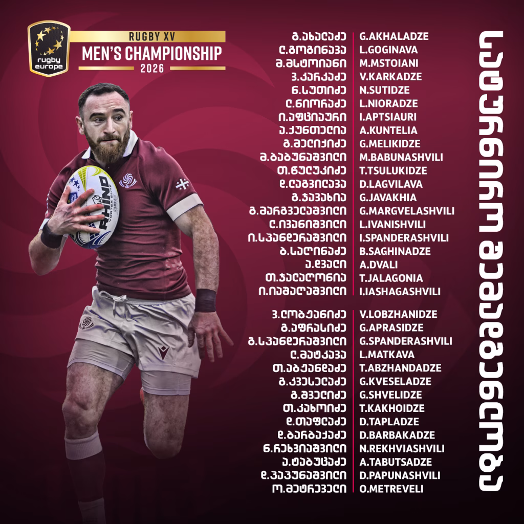 რაგბის ევროპის ჩემპიონატისთვის 34 კაციანი შემადგენლობა უკვე დასახელდა. აღსანიშნავია, „ბორჯღალოსნებში“ საკუთარი ძალის სიმტკიცეს და წლების განმავლობაში დაგროვილ გამოცდილებას, ბოლნისელი ახალგაზრდა მორაგბე ნიკოლოზ რეხვიაშვილი გამოცდის.